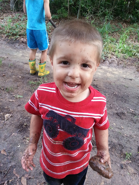 We spent nearly 2 hours out in the back drive. They made mud cakes, splashed, tried to escape crocodiles & piranha's in the Amazon river, built a 'bridge', and had a TON of fun!