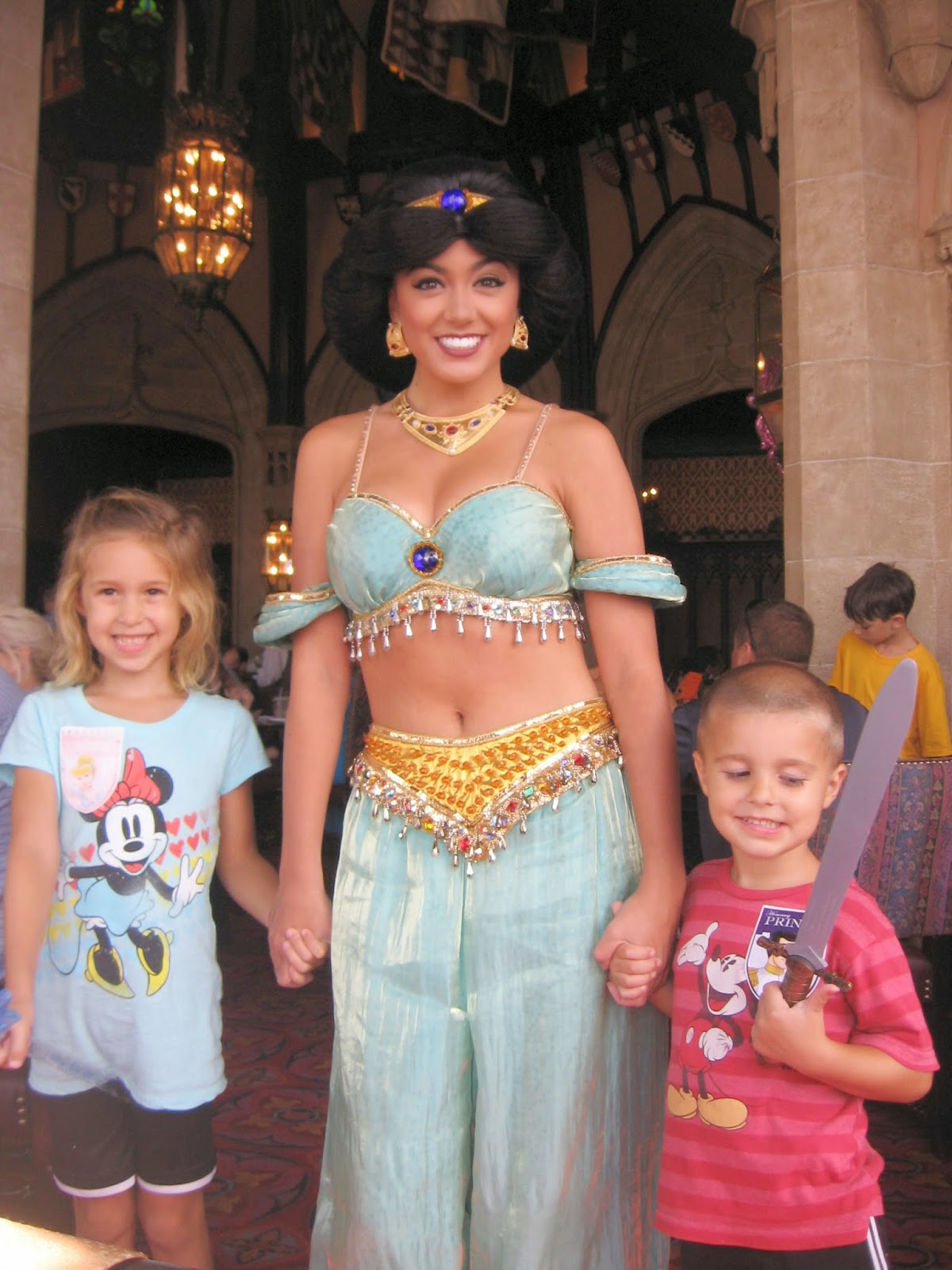 After the teacups, we had about 30 minutes before our reservation at Cinderella's Royal Table. I made the reservation at 3:45 because I knew we'd be really tired by then and be ready to sit in the air conditioner and rest. I was right! We were all really tired and dragging by then. We were first in line, so Arabelle and Bo were the honorary Prince and Princess of the meal. Too bad they were both so tired because they weren't even acting that excited about it all. ha!